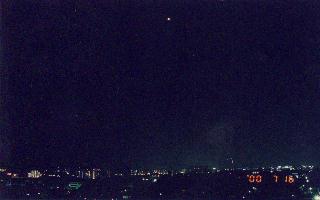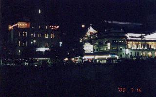 | 鴨川越しの南座の上に皆既月食直前の 満月が見えました(午後8時頃) |